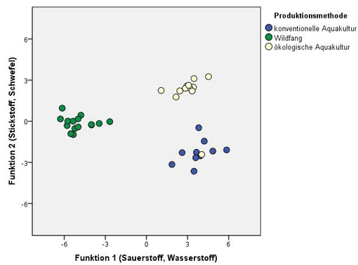 Abbildung 1: Bestimmung der Produktionsmethode von Lachsproben durch Diskriminanzanalyse
